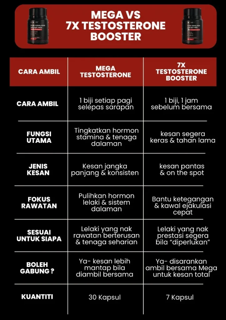 Ia menggunakan bahan semulajadi seperti Shilajit & herba premium.