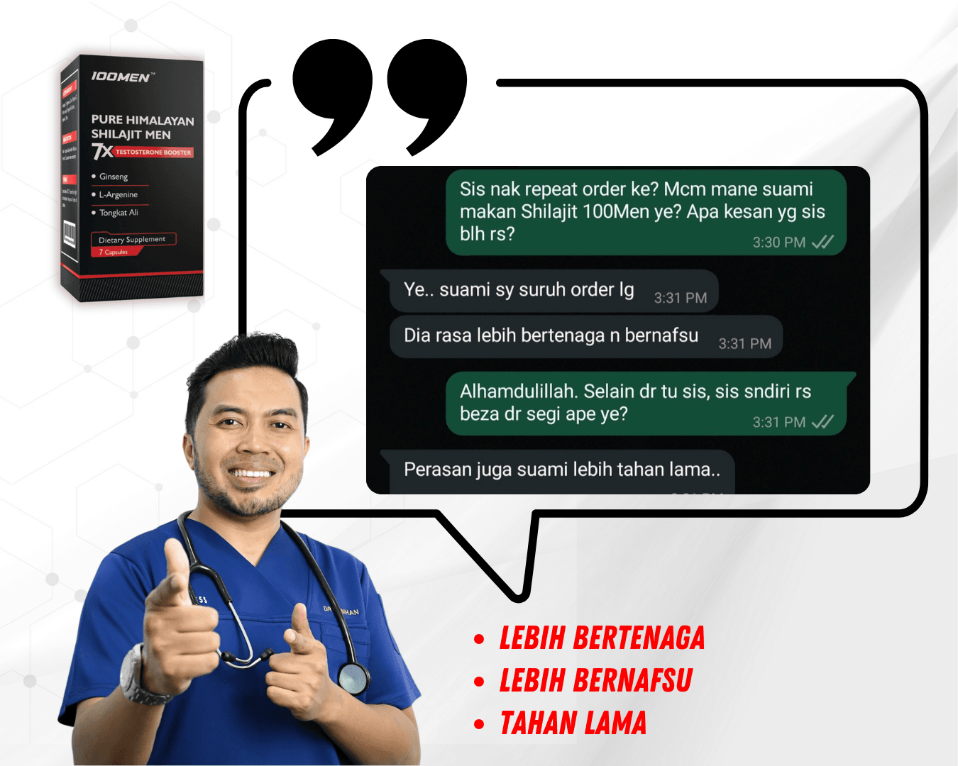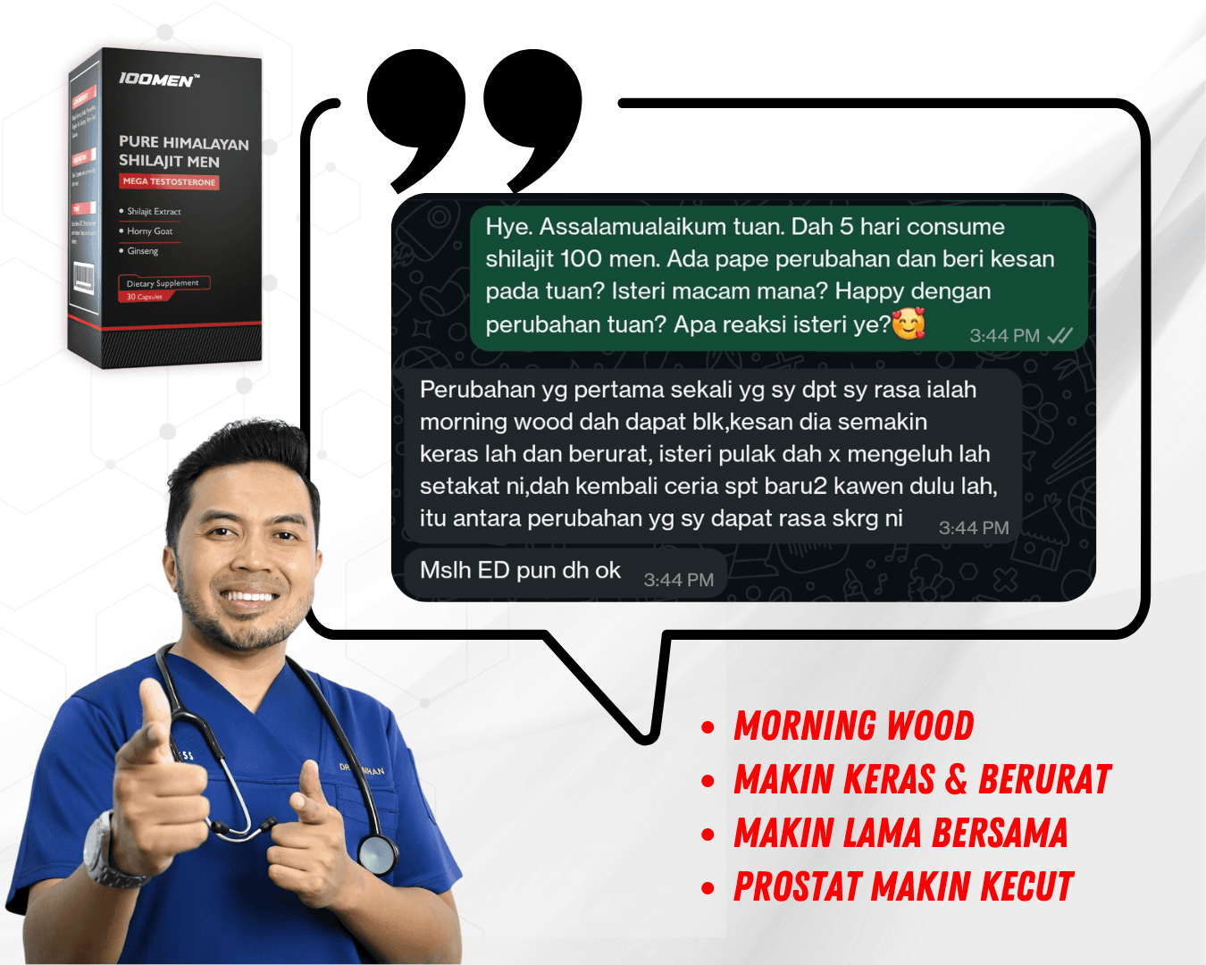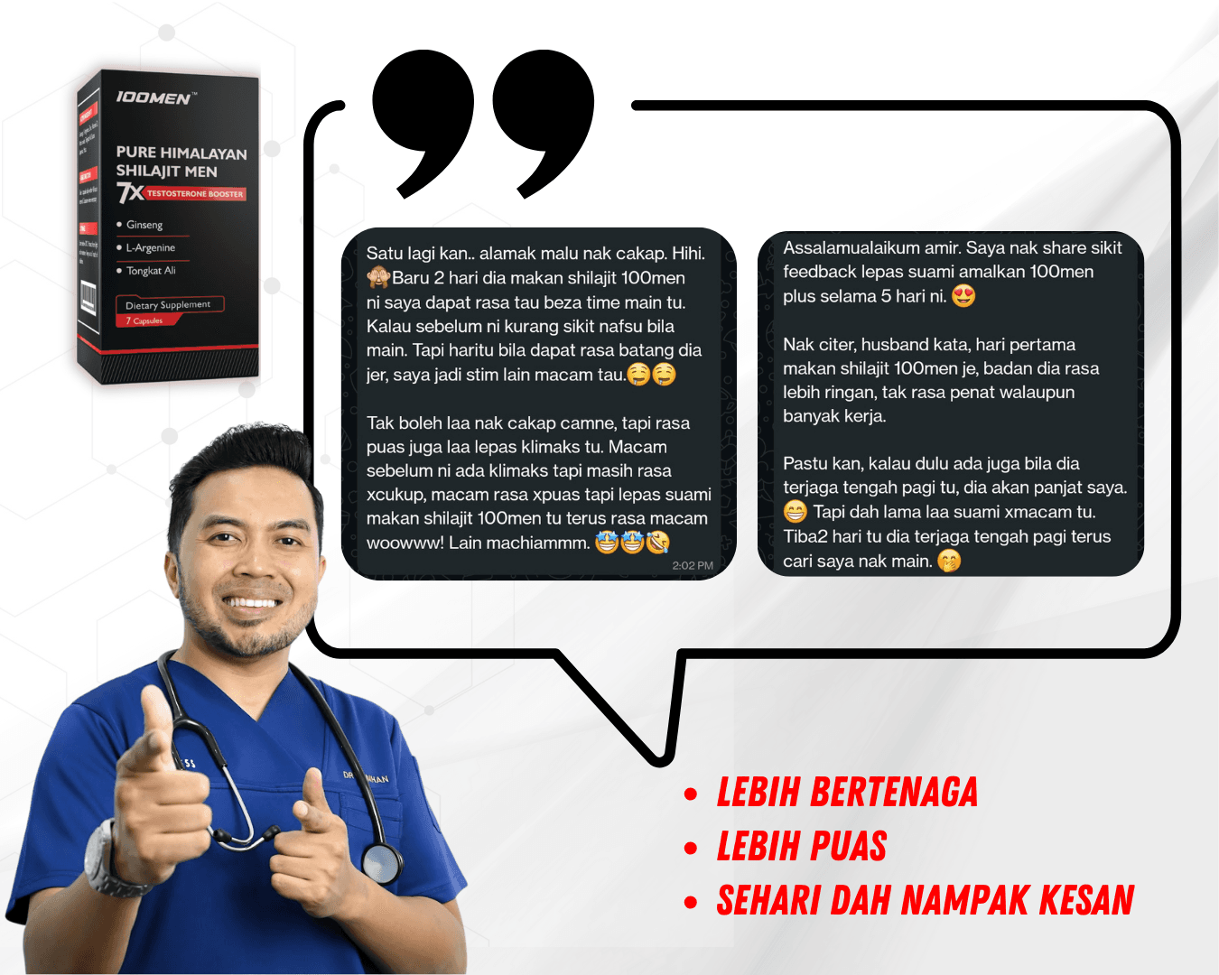 100MEN diformulasi oleh doktor dan menggunakan bahan semulajadi 100% seperti Shilajit Himalaya dan 7 herba premium.
