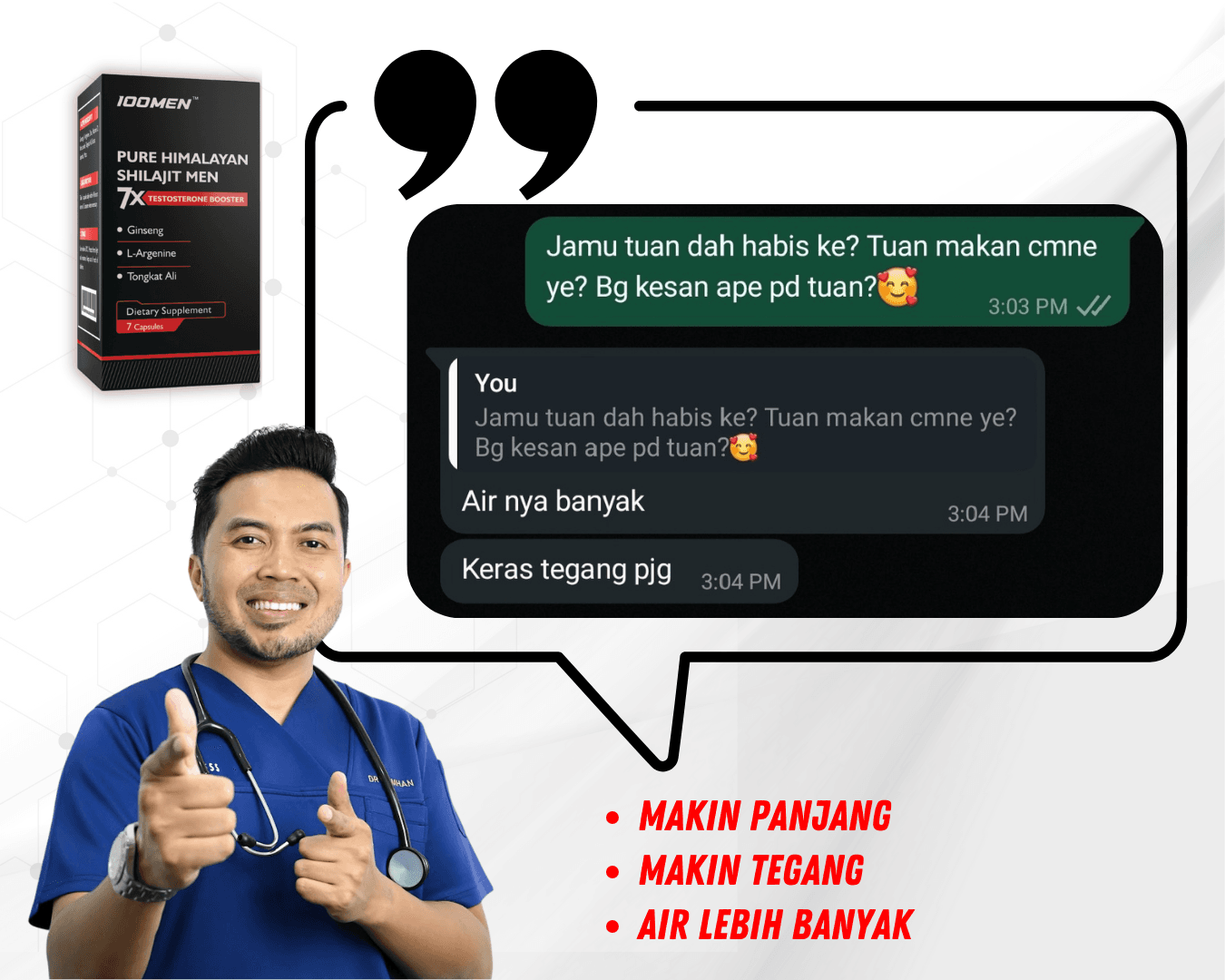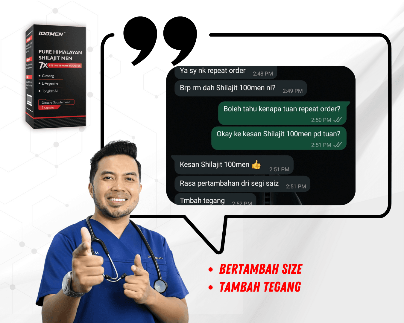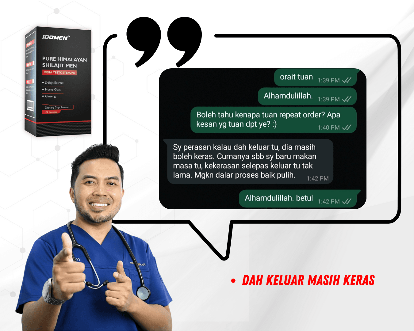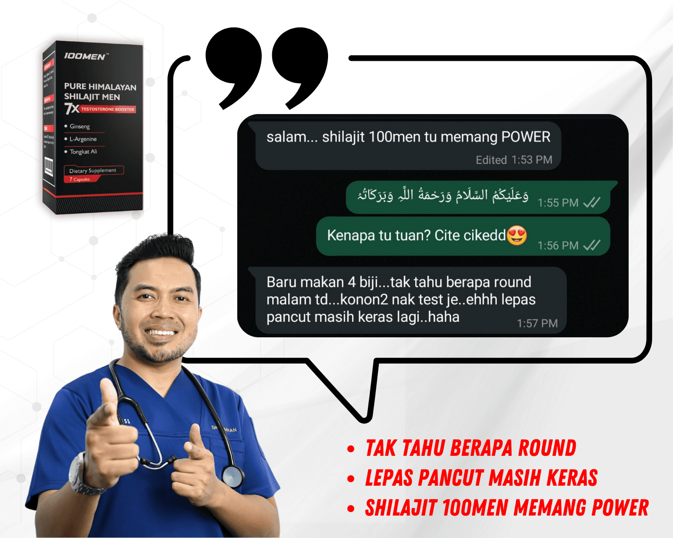 100MEN diformulasi oleh doktor dan menggunakan bahan semulajadi 100% seperti Shilajit Himalaya dan 7 herba premium.